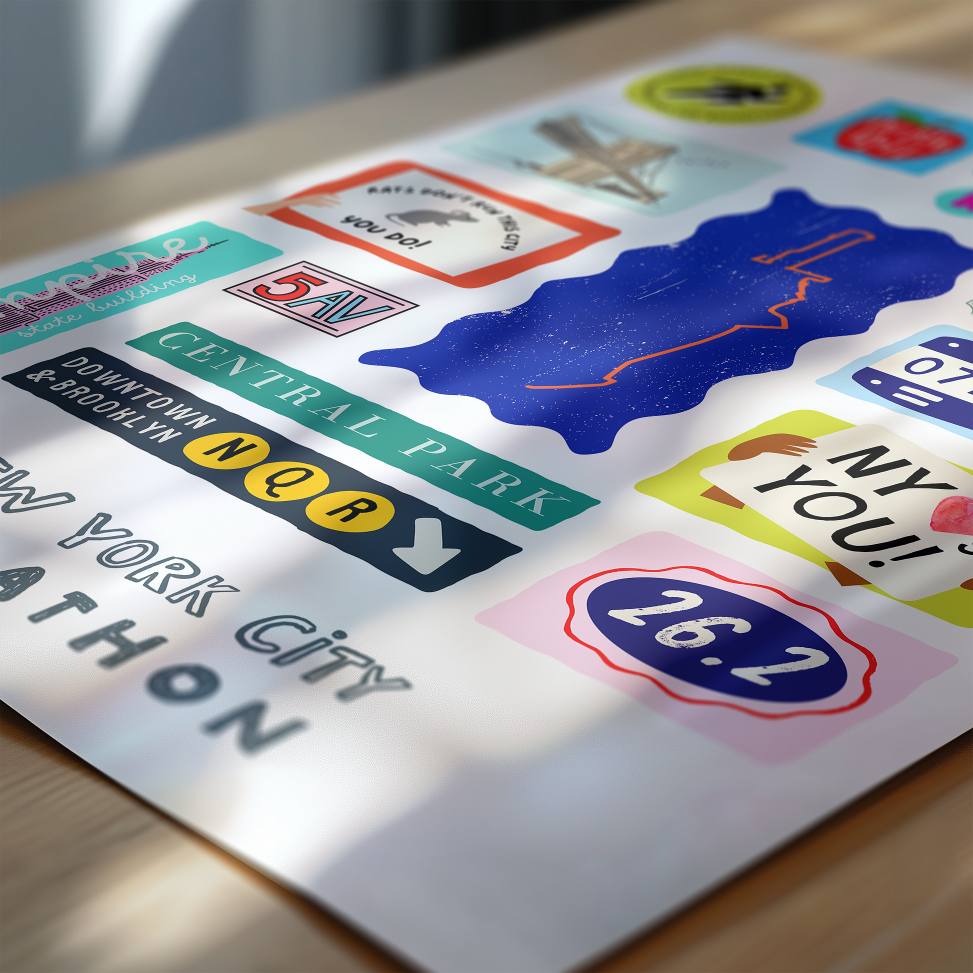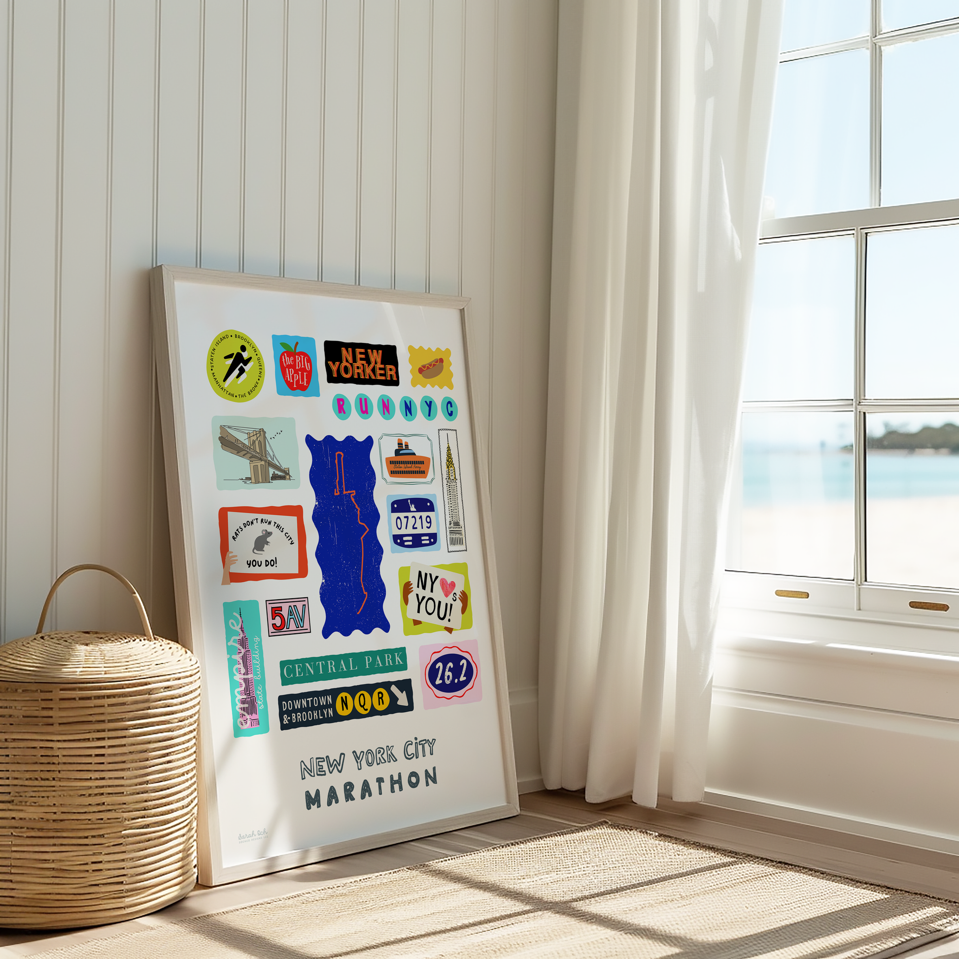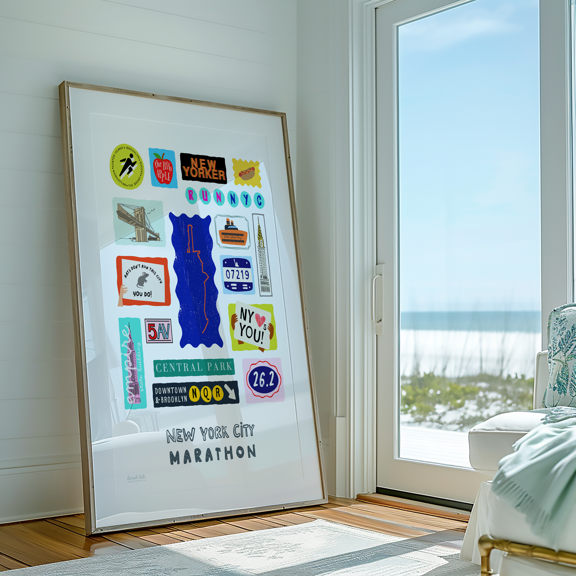Colorful, custom-designed print featuring local attractions. All prints are printed on glossy photo paper. All framed prints come in a lightweight, white frame.
