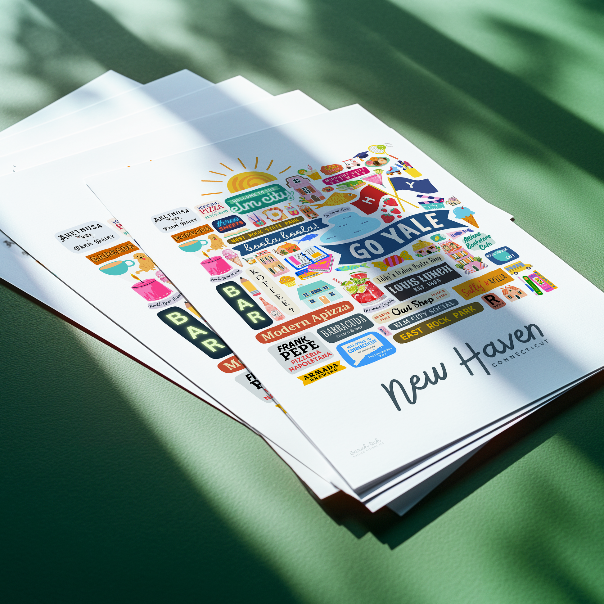 Colorful, custom-designed print featuring local attractions. All prints are printed on glossy photo paper. All framed prints come in a lightweight, white frame.
