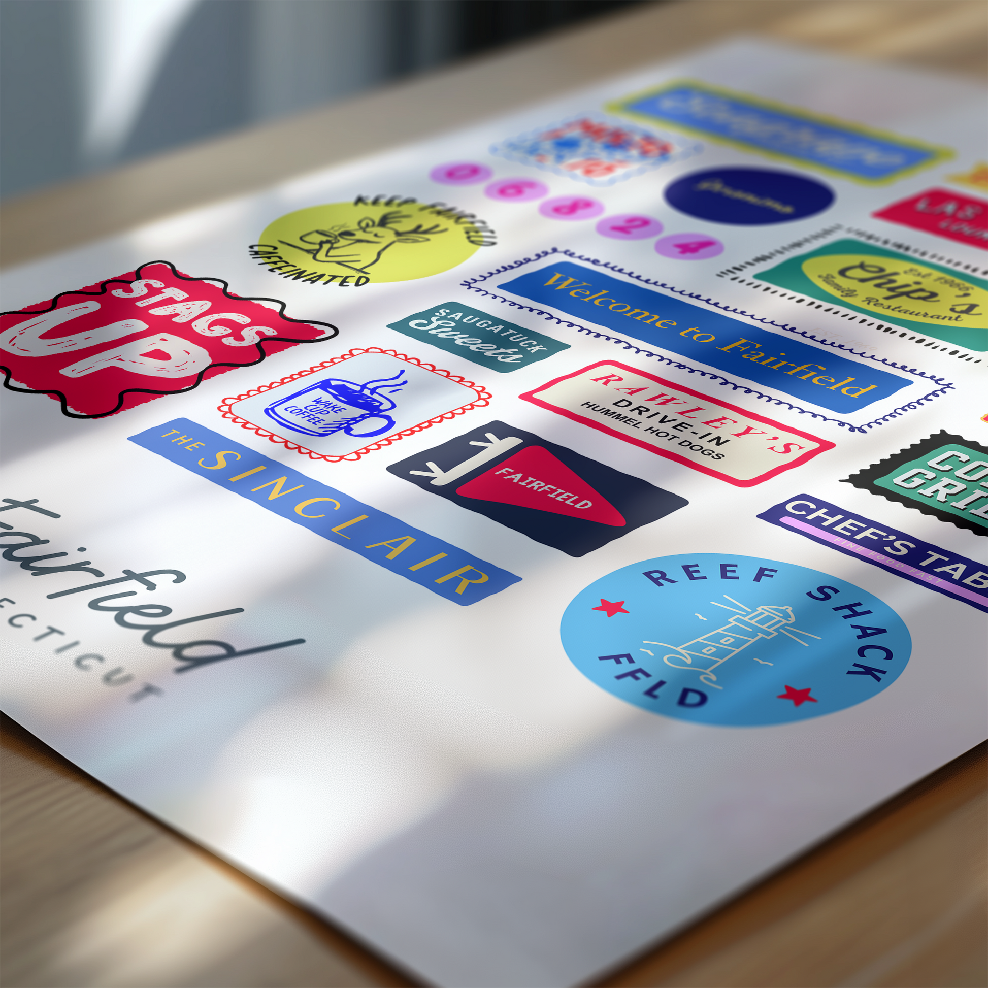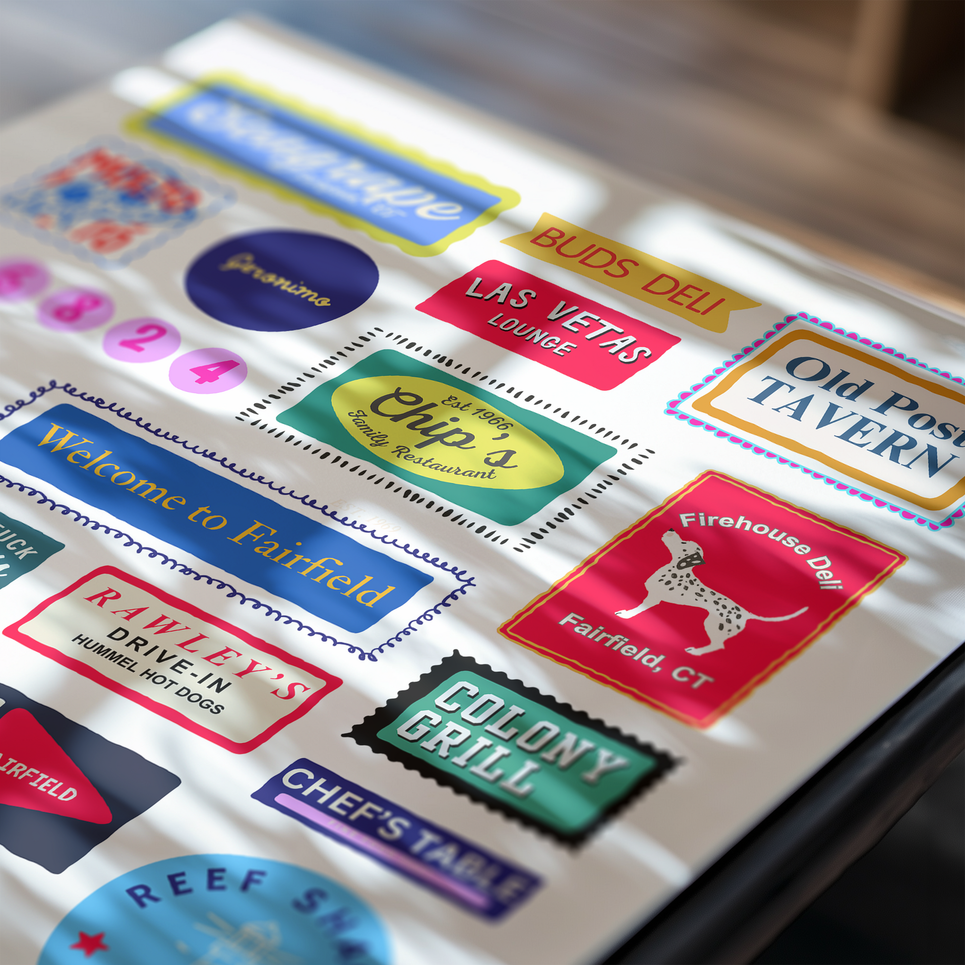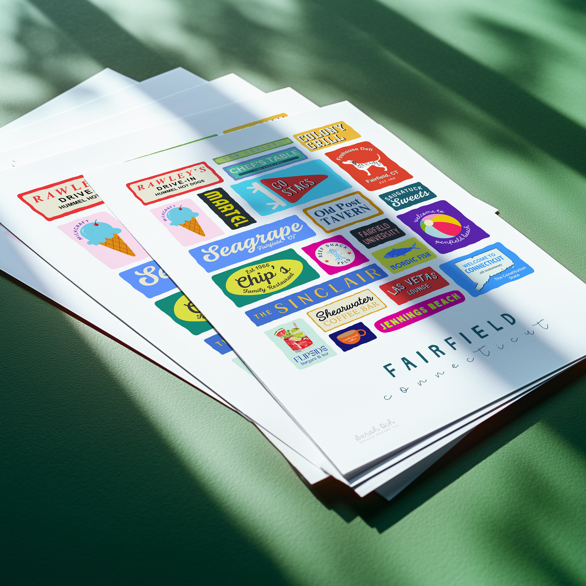 Colorful, custom-designed print featuring local attractions. All prints are printed on glossy photo paper. All framed prints come in a lightweight, white frame.