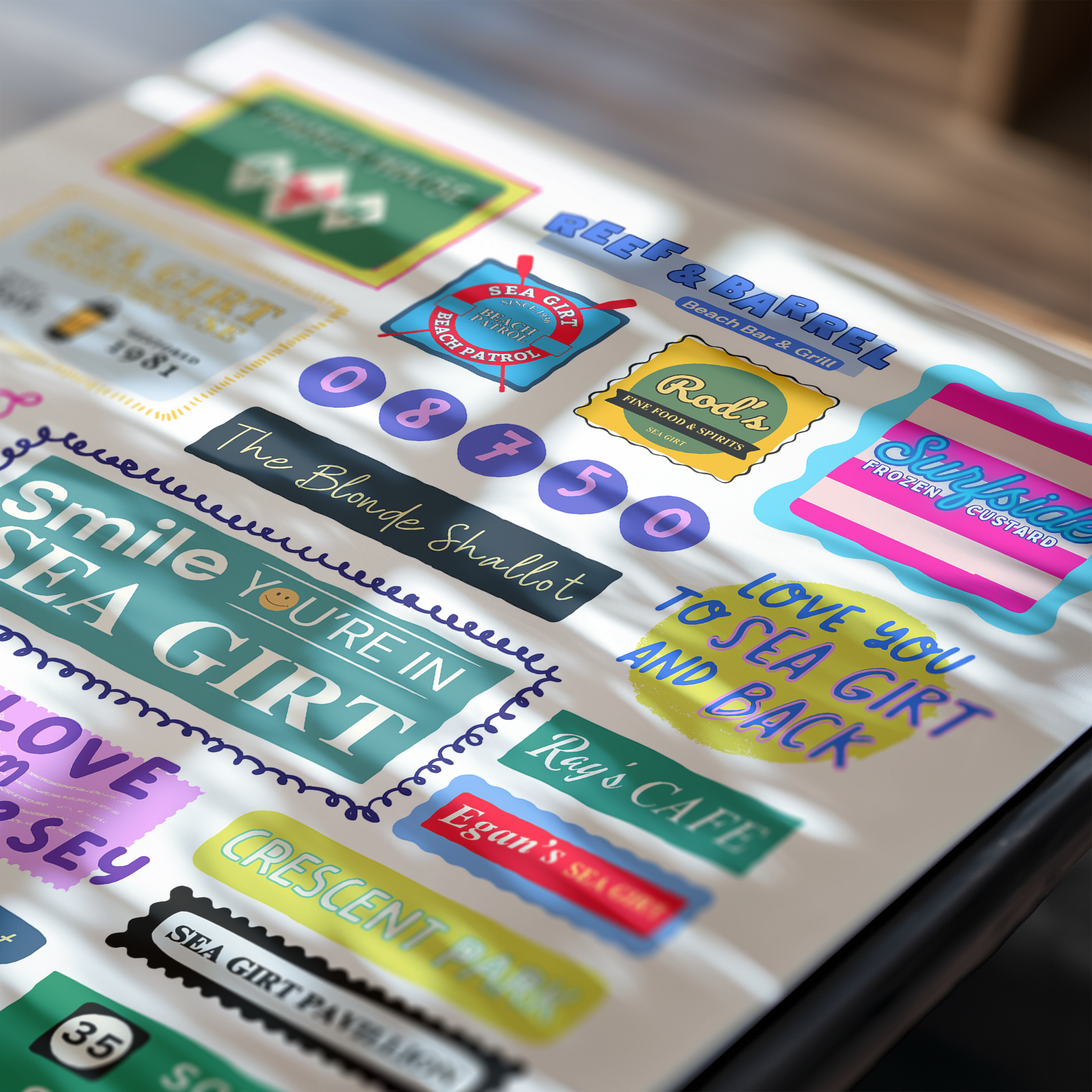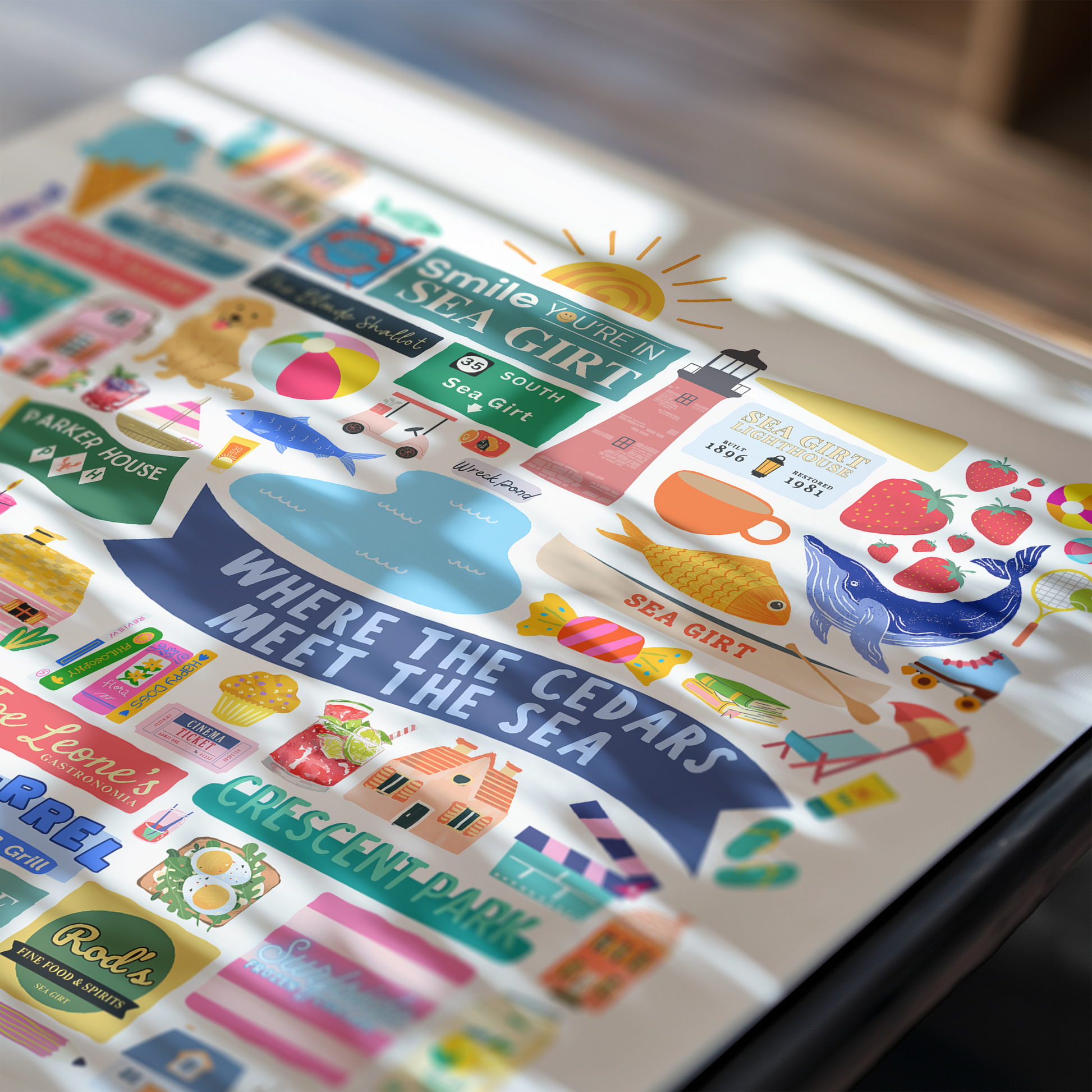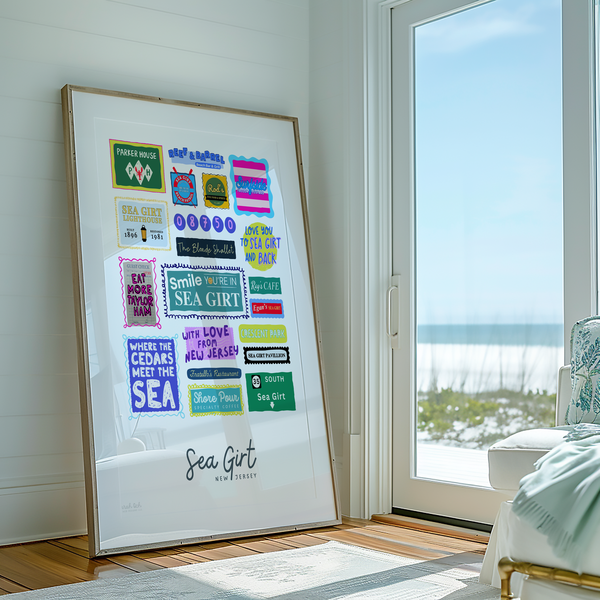 Colorful, custom-designed print featuring local attractions. All prints are printed on glossy photo paper. All framed prints come in a lightweight, white frame.